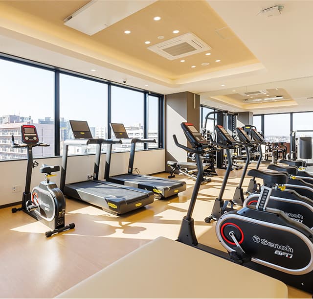 心肺運動負荷検査による有酸素運動能の測定と体組成測定により、個々の運動能力、筋量を測定し、経験豊富な健康運動指導士、理学療法士、管理栄養士が連携して患者様一人ひとりに合わせた運動・食事メニューを提案します。クリニックには最新式のトレッドミル、筋力トレーニングマシンを設置しており、メニューに沿った運動をいつでも行うことができます。